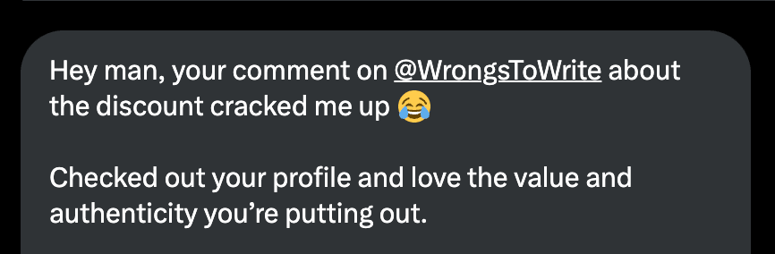Yoo Reader, We have an important topic today – DMs. More specifically, how to DM in a way where you don't blend in with all the other boring, lifeless, and easily resistible bots (so that you can actually land clients through DMs). And for the purpose of this newsletter, we'll be talking about Twitter DMs (though this applies to just about every other form of outreach – cold email, Instagram DMs, etc) But before I show you how to write irresistible DMs, I want to show you what you're up...